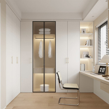 Moderne Luxe Houten Kast Organizer Mdf Vouwdeurpaneel Walk-In Kledingontwerp Voor Slaapkamer Woonkamer Eetkamer Workshop Fitnessruimte